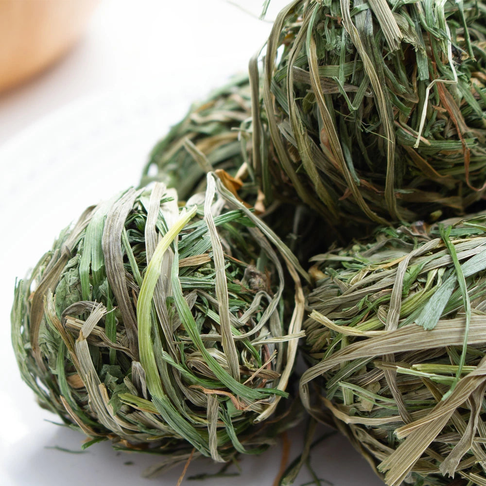 這款寵物草由美國本土種植、不含化學物質的義大利黑麥草乾燥製成。精選柔軟的義大利黑麥草,手工採摘,不添加殺蟲劑和化肥,揉搓成蓬鬆的小球。